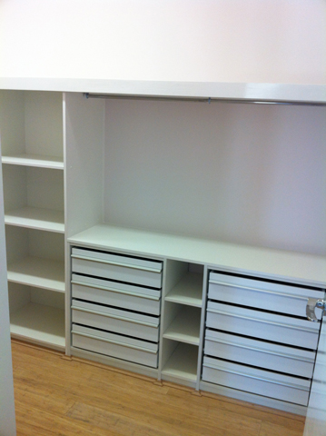 We can simply add more shelving as to your requirement or we can add a more complex wardrobe fit out as you require, with drawer units, shoe racks etc., after all everybody’s need and requirements are different.
